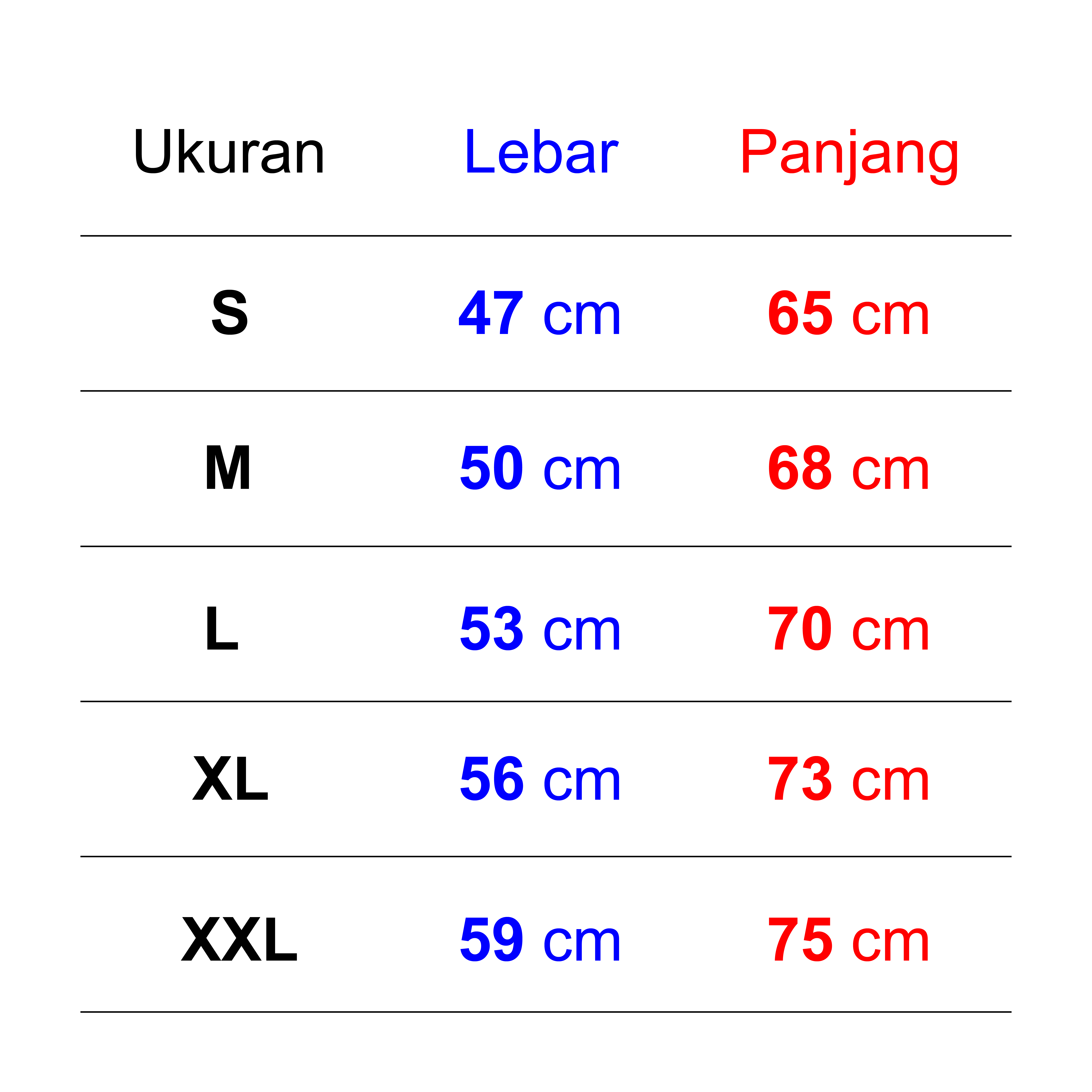Bahan: Cotton Combed 30sPilihan warna bisa dilihat di bawah.